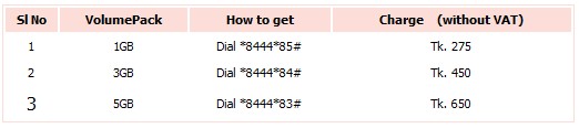 p2: unlimited internet - this package can be activated from all postpaid connections and all the prepaid desh customers’ connection. just send sms with keyword p2 to 3343 to activate this service. the charge for this service is bdt 650/month (excluding vat).